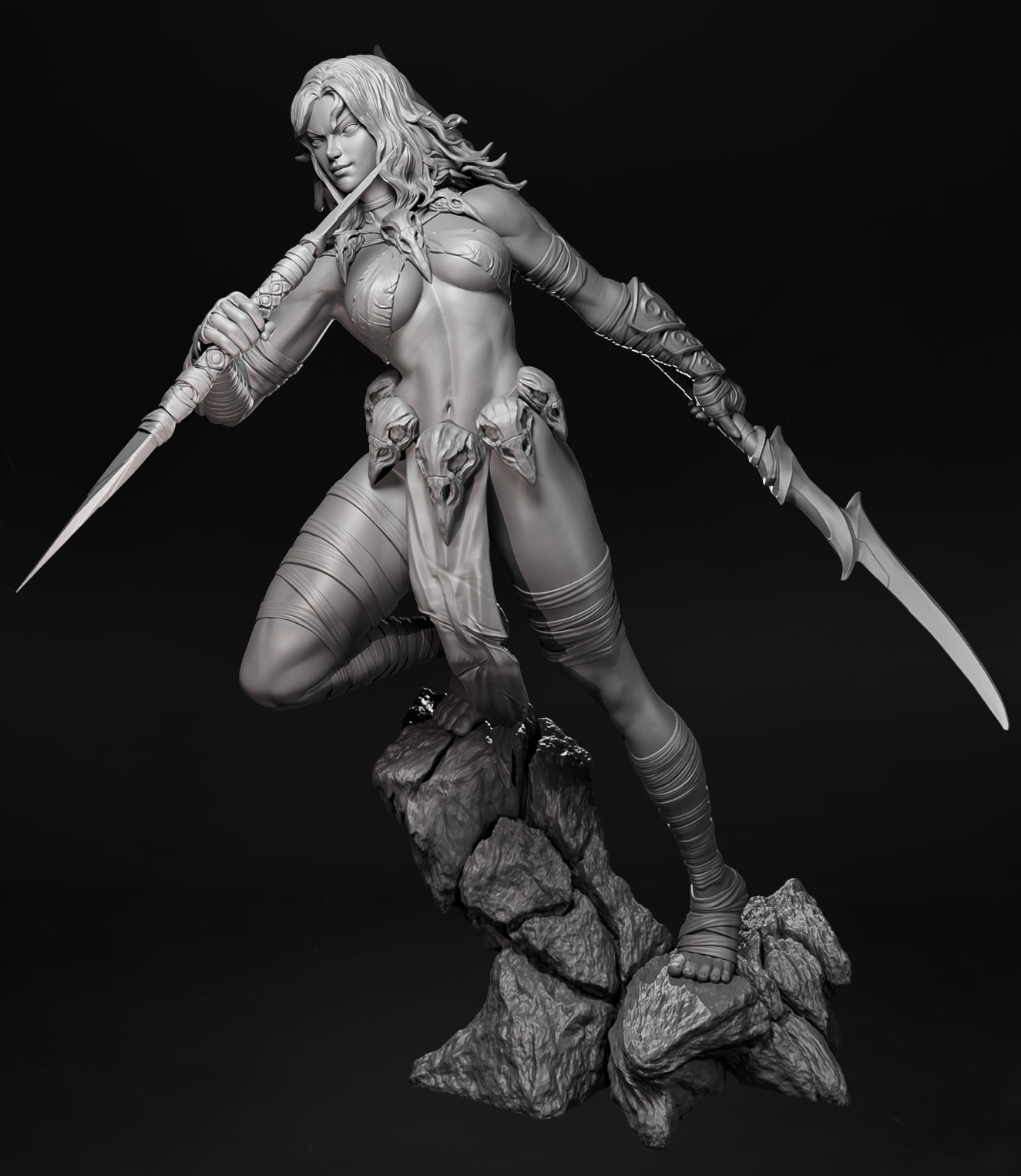 Dziką Ostrze Pustkowi to bezlitosna wojowniczka fantasy ukształtowana przez walkę i przetrwanie w dzikich krainach. Dynamiczna poza, podwójne ostrza oraz surowy charakter rzeźby tworzą model pełen agresji i energii.
