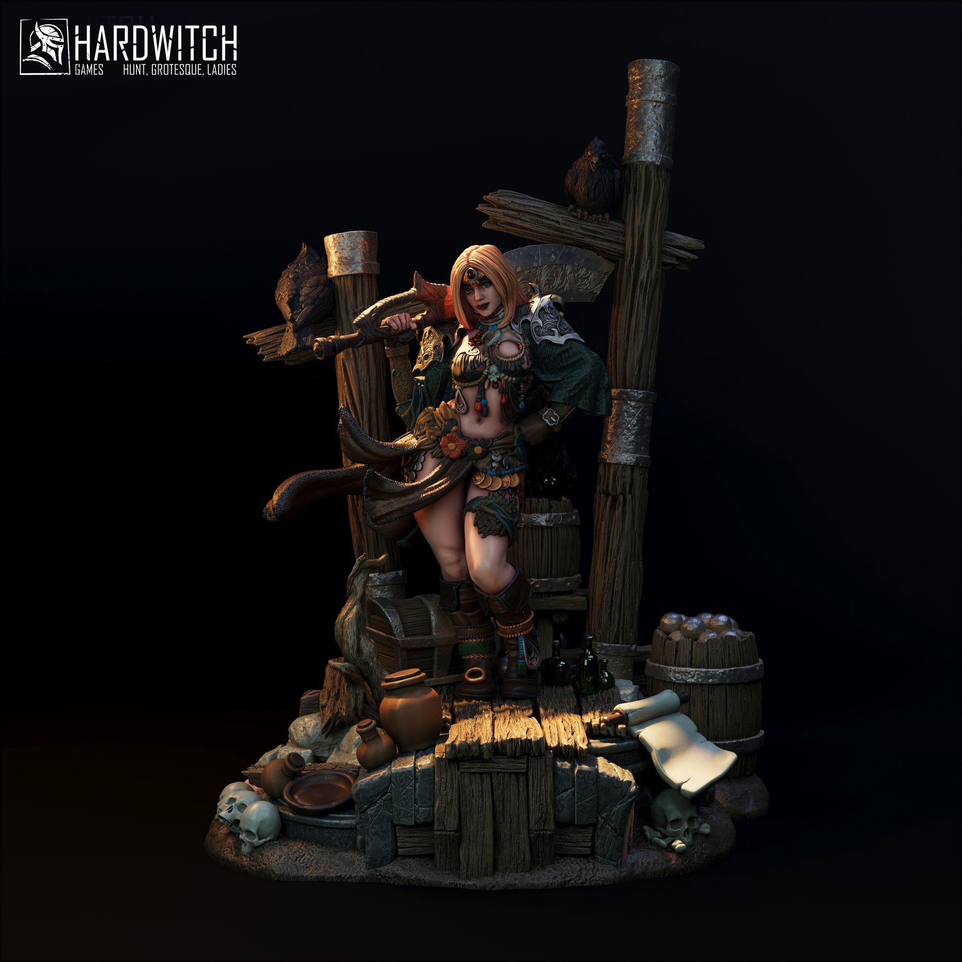 Figurka Leenhva O'Braites – Magarid Forest | łowczyni fantasy z krukami | miniatura kolekcjonerska 32 mm / 75 mm / 100 mm (HardWitch Games)