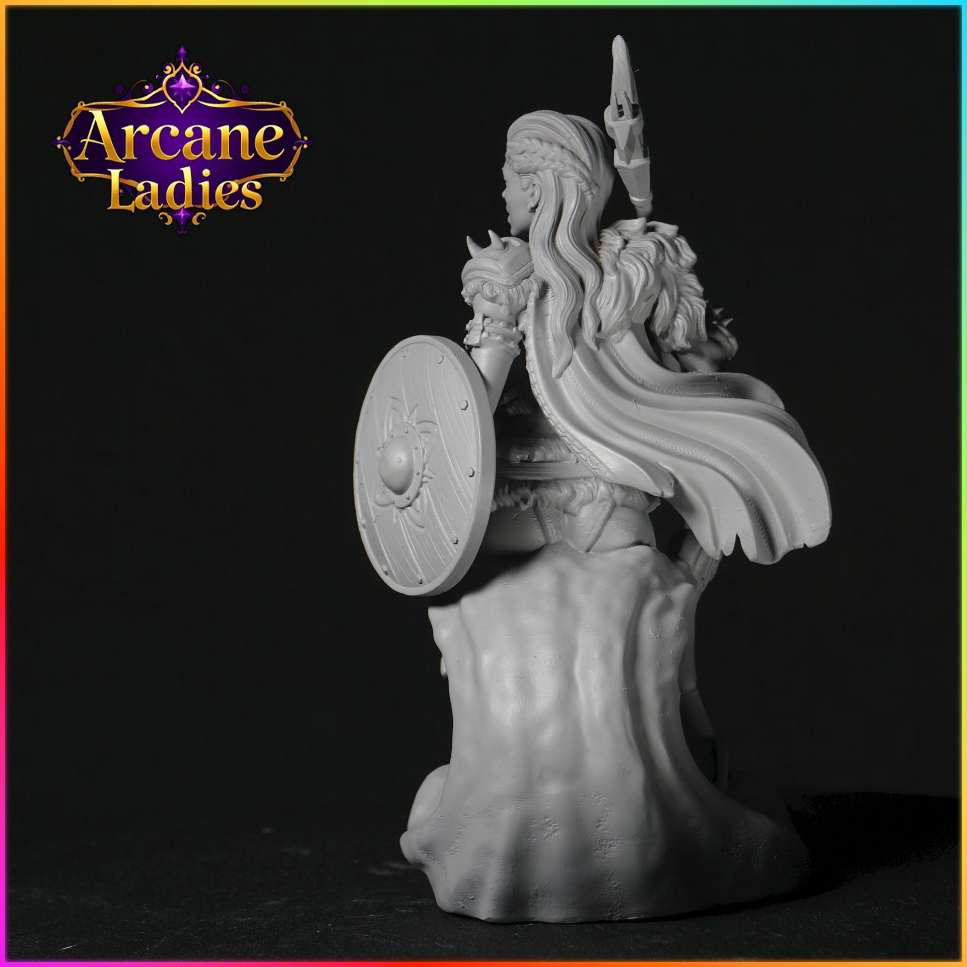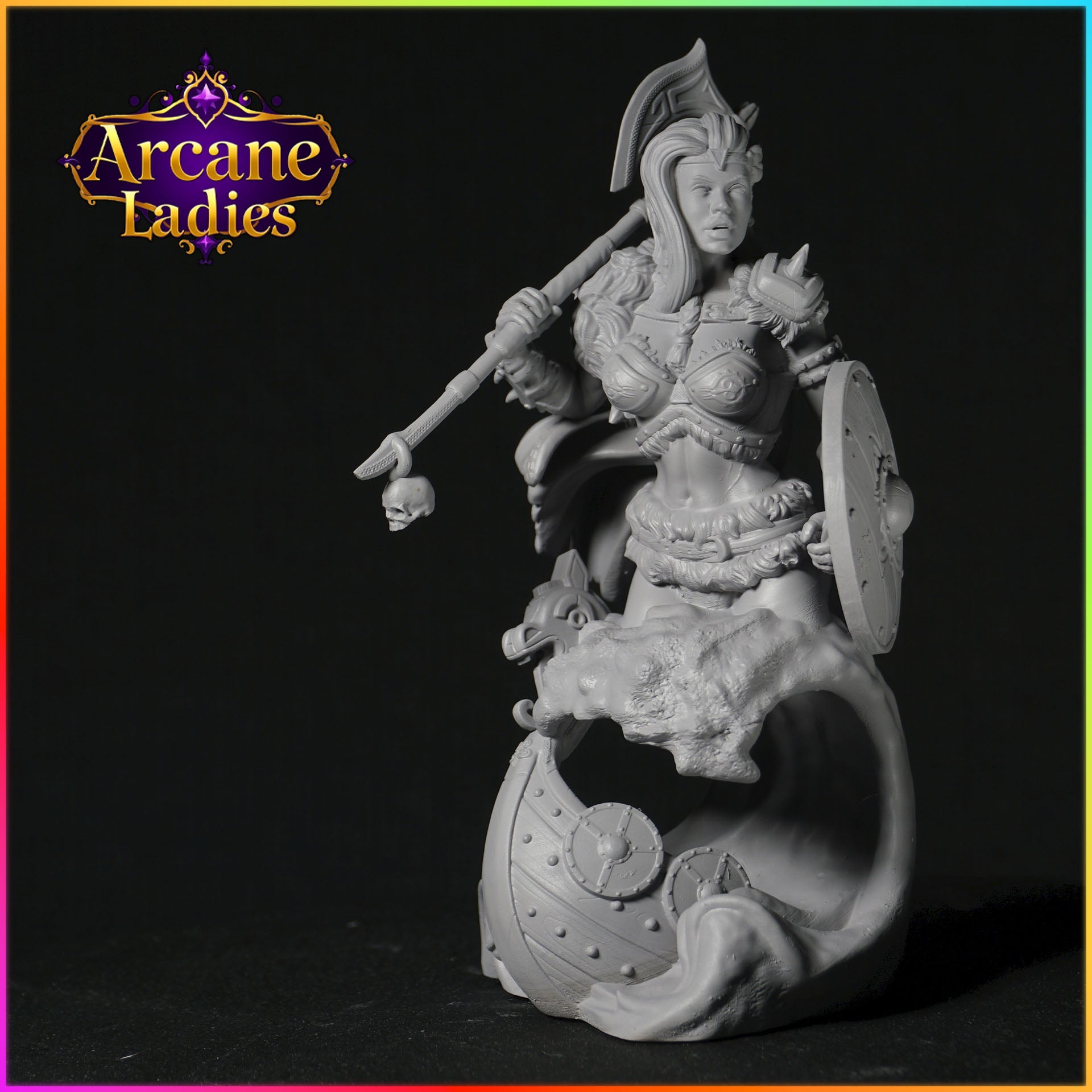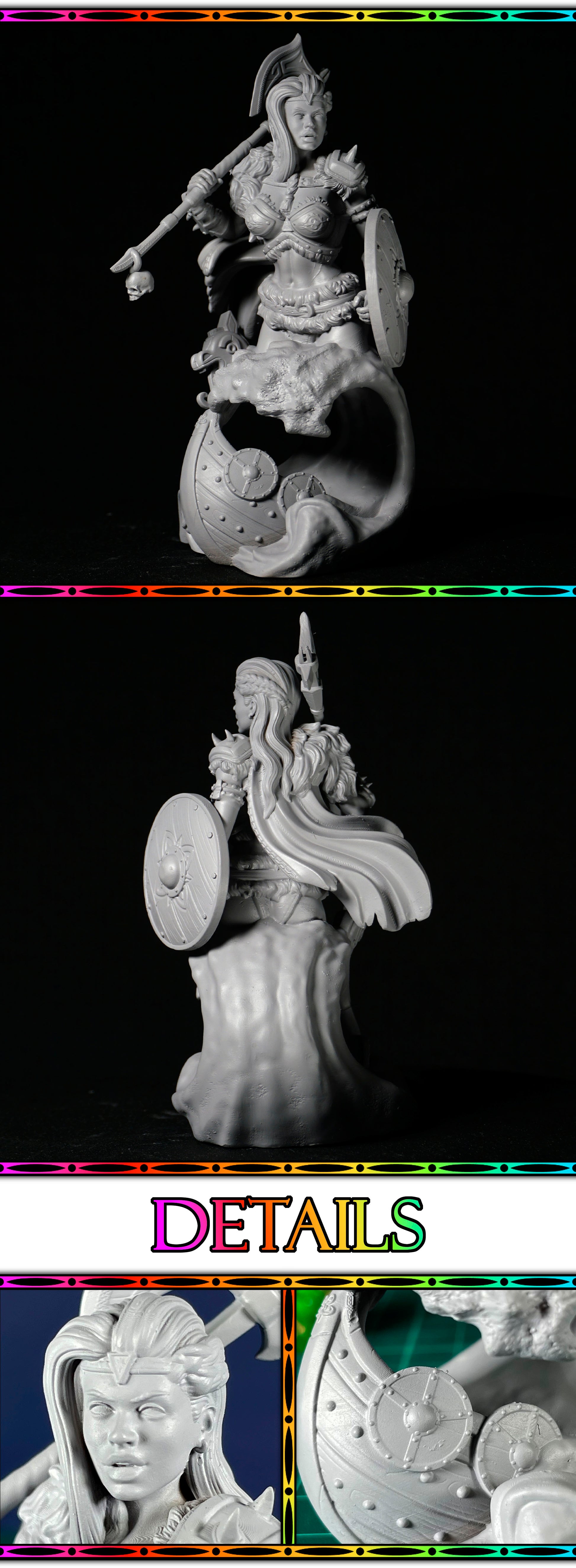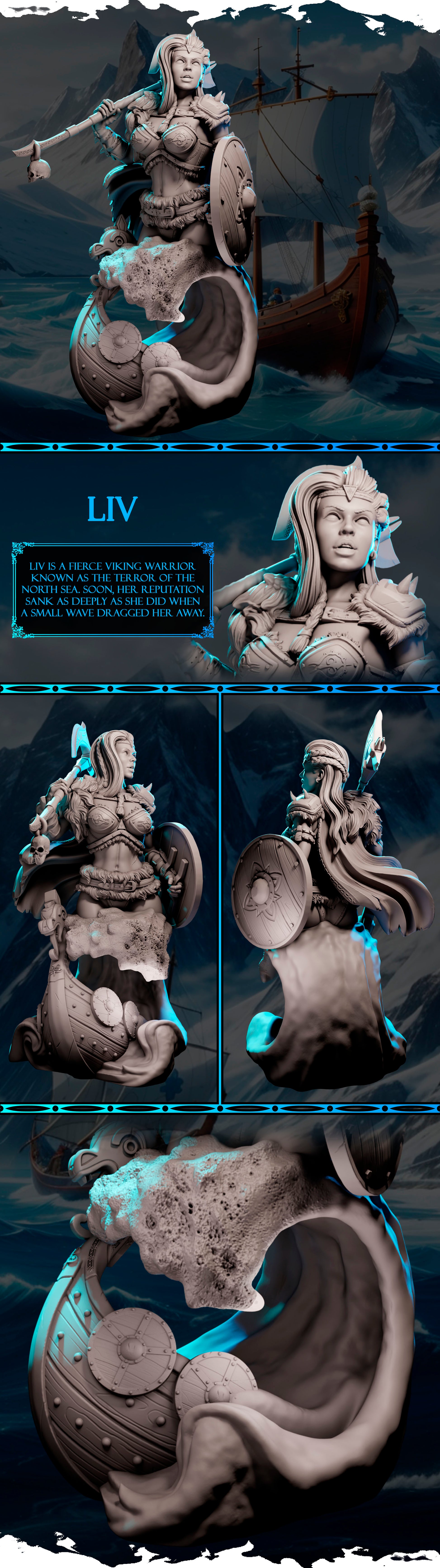 Na lodowych wodach północy, wśród wichrów i fal, rozbrzmiewa imię Liv – nieustraszonej wojowniczki wikingów. Znana jako postrach Morza Północnego, uosabia siłę, odwagę i dzikość dawnych sag. Jej sylwetka, wsparta na pokładzie smoczej łodzi, łączy w sobie majestat i grozę wojowniczki, która nigdy nie ustępuje w walce.